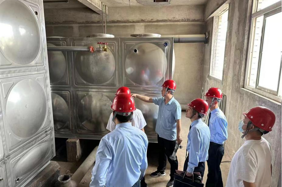 郑州紫荆山宾馆检查红石榴施工项目消防水泵房建设情况