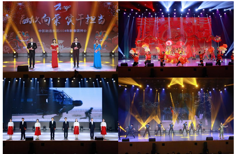 团拜会现场张灯结彩,广大干部员工欢聚一堂、共迎佳节,在现场或以线上方式共同欣赏由总部及子公司员工自编自演的文艺节目,处处体现着为军首责的使命担当,处处洋溢着“融通一家亲”的浓厚氛围。
