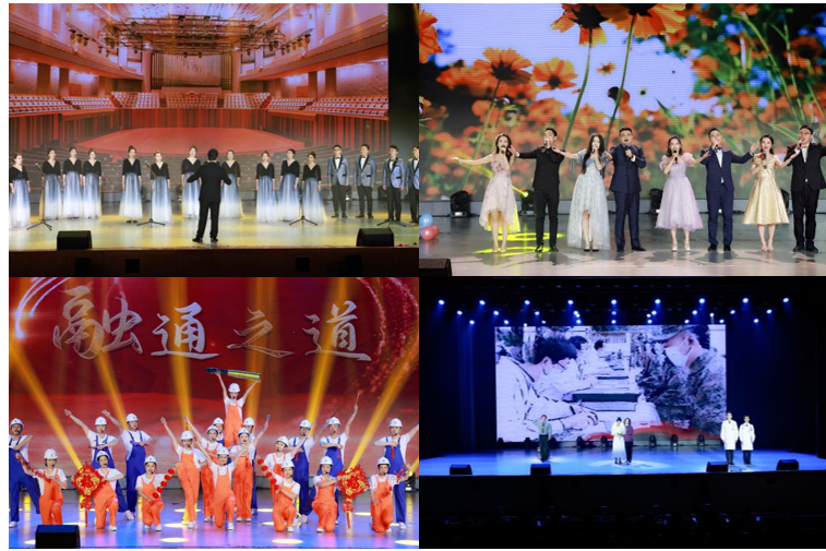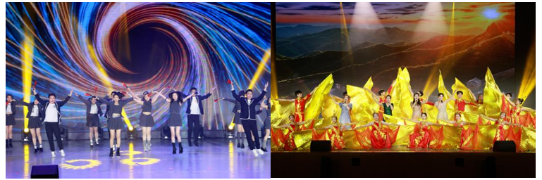 开场舞《盛世欢歌》将舞龙与长扇舞相结合,节奏欢快、气氛热烈,拉开了文艺演出的序幕,抒发了融通人对伟大祖国山河锦绣、国泰民安的美好祝愿。诗朗诵《非凡五年》回顾了集团公司五年来边组建、边接收、边运营、边发展的非凡历程,用“强军有我,强国有我”的铮铮誓言表达了融通人的赤诚之心。歌伴舞《有我在》展现了中国军人用生命和热血铸就的不朽军魂,彰显出融通人献身强军兴军伟业的意志决心。合唱《青春舞曲》《如愿》表现了融通青年朝气蓬勃、奋发向前的精神风貌。歌曲串烧《想把我唱给你听》《同爱同在》等展现了融通人对创造美好生活的追求和共筑融通家的深情厚谊。快板《融通之道》用脍炙人口的形式,诠释了融通企业文化的深刻内涵。情景剧《爱的接力》演绎了医护工作者救治渐冻症患者十六载的感人故事,讴歌了救死扶伤的人间大爱。现代舞串烧《未来我来》用充满青春活力的舞蹈,展现了融通事业的生机与活力。歌伴舞《领航》展示了广大融通人奋进新征程、建功新时代的豪迈气魄,描绘了“双一流”奋斗目标的宏伟蓝图,为整场文艺演出画上圆满句号。