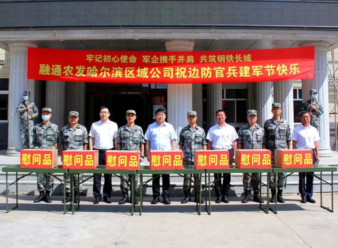 融通农发哈尔滨区域公司来到“黑河好八连”看望慰问全连官兵,又到中俄界江哨位,看望慰问了正在执勤的战士,送去自主生产的绿色农产品,并转达了公司党委和全体员工对边防官兵的崇高敬意和衷心祝福。官兵们深受感动和鼓舞,纷纷表示一定忠于职守、不辱使命,坚决守好祖国的“北大门”。