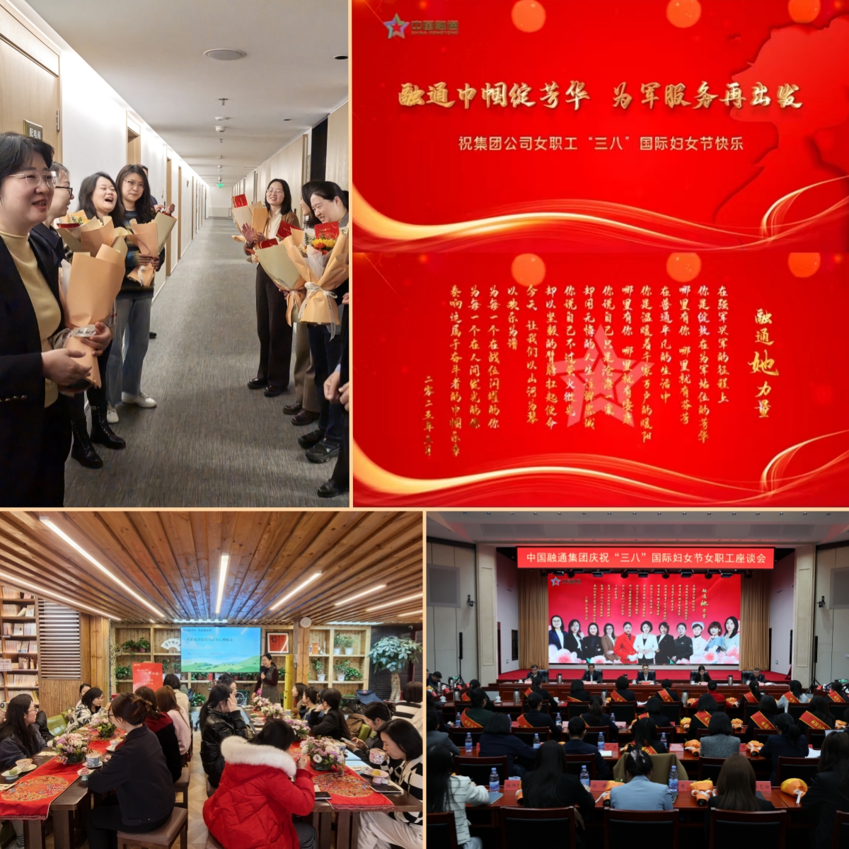 在第115个“三八”国际妇女节到来之际,集团公司各级工会及女工委以“融通巾帼绽芳华 为军服务再出发”为主题,开展内涵深刻、形式新颖、丰富多彩的系列活动,讴歌伟大时代,抒发为军情怀,激励建功立业,进一步弘扬“忠诚、担当、务实、创新”精神,充分展示了融通女职工刚毅柔情、自强不息、智慧豁达、从容细腻的时代风采。