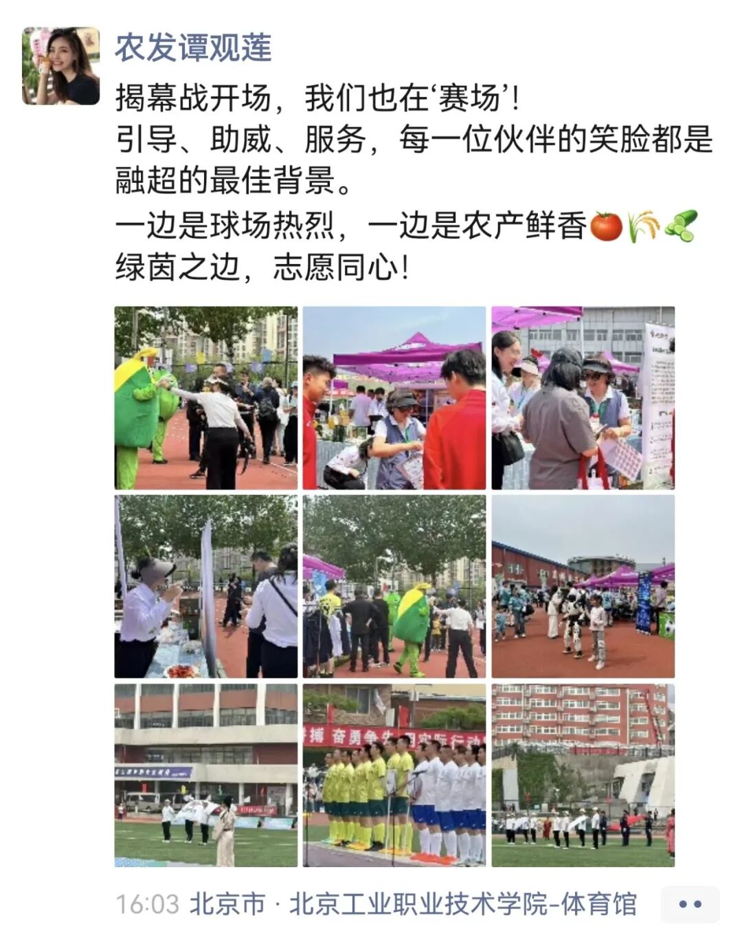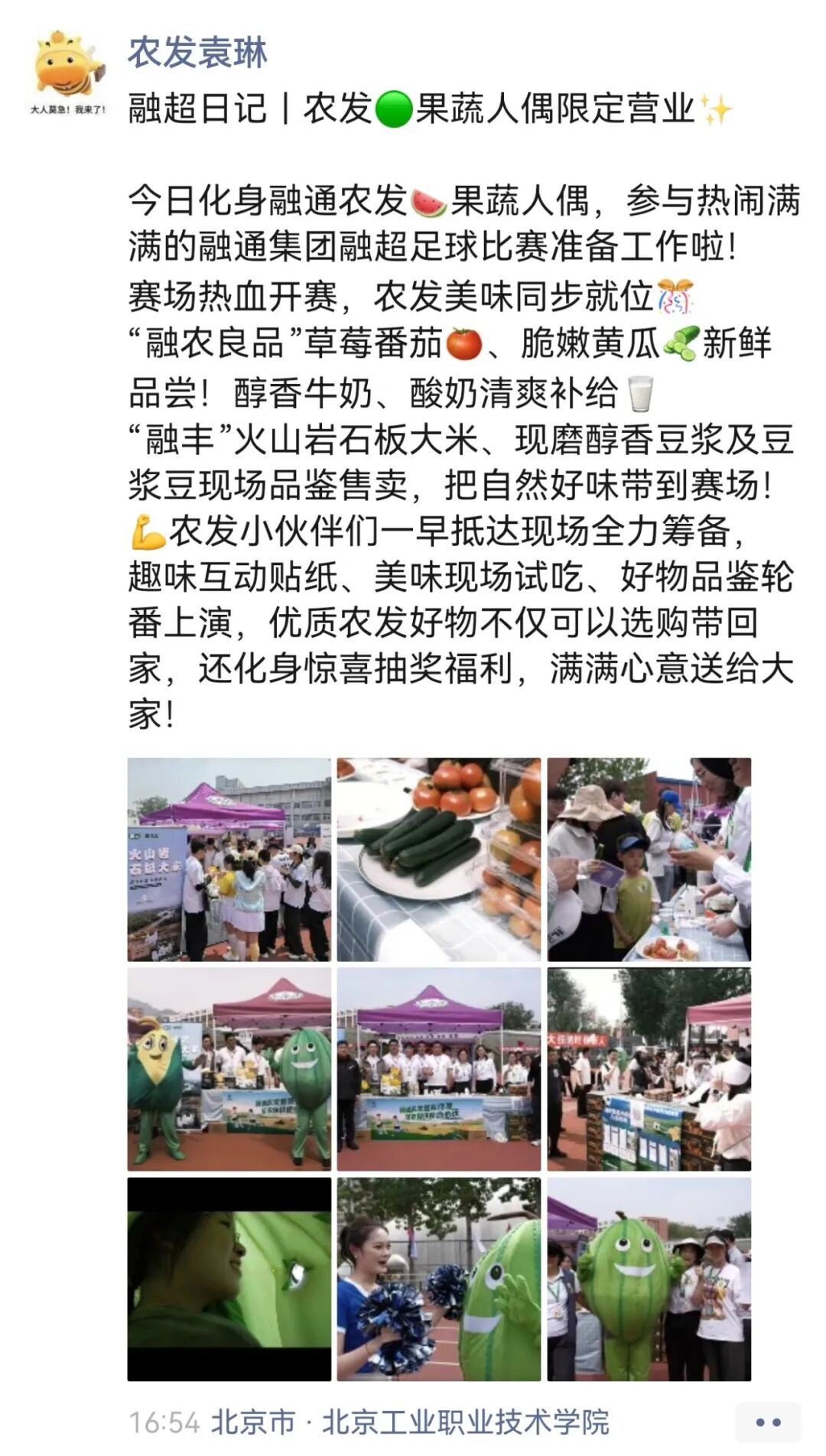 “赛场热血开赛,农发美味同步就位!农发小伙伴们一早抵达现场全力筹备,趣味互动贴纸、美味现场试吃、好物品鉴轮番上演,满满心意送给大家!”