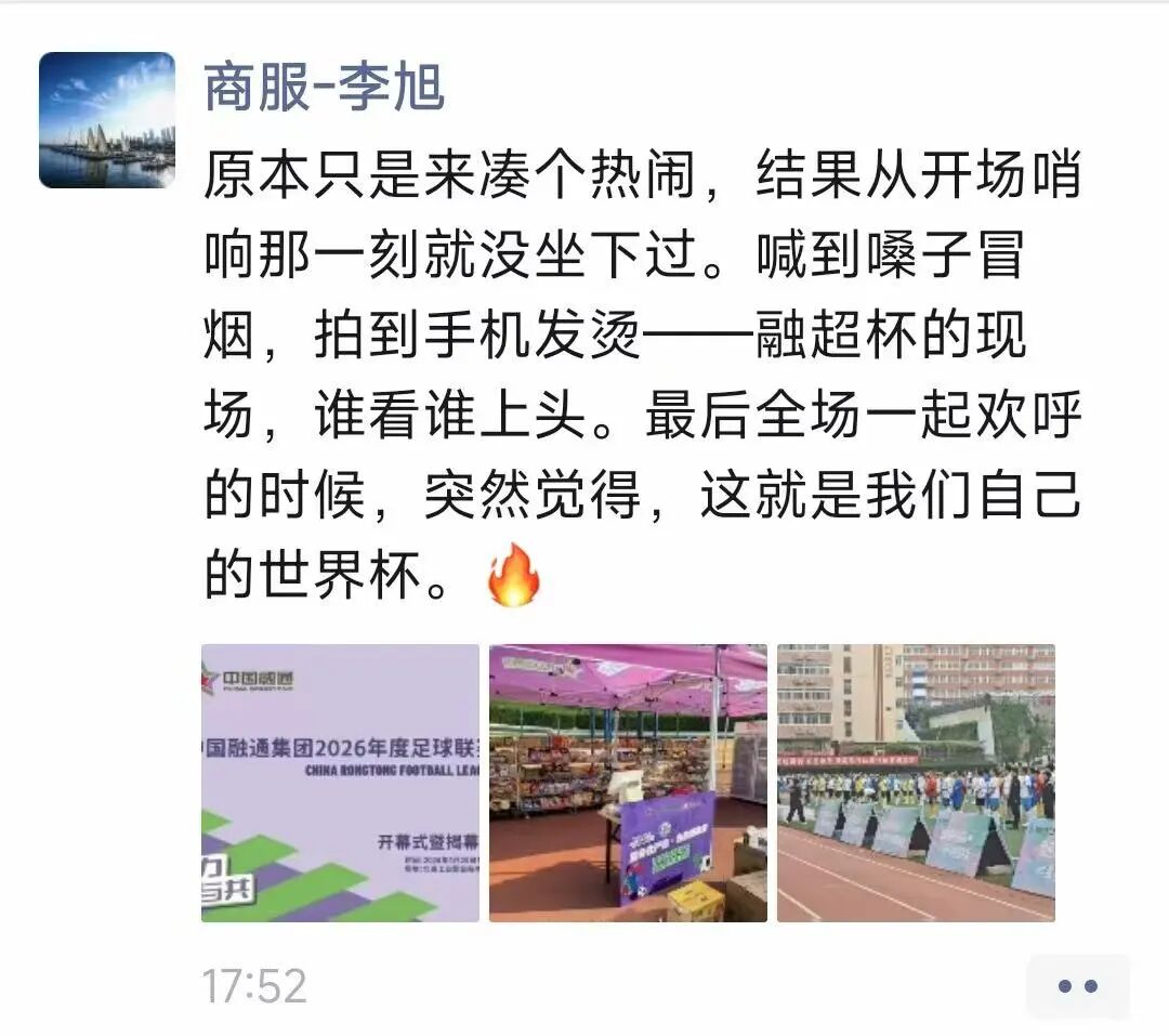 “原本只是来凑个热闹,结果从开场哨响那一刻就没坐下过。喊到嗓子冒烟,拍到手机发烫——融超杯的现场,谁看谁上头。”
