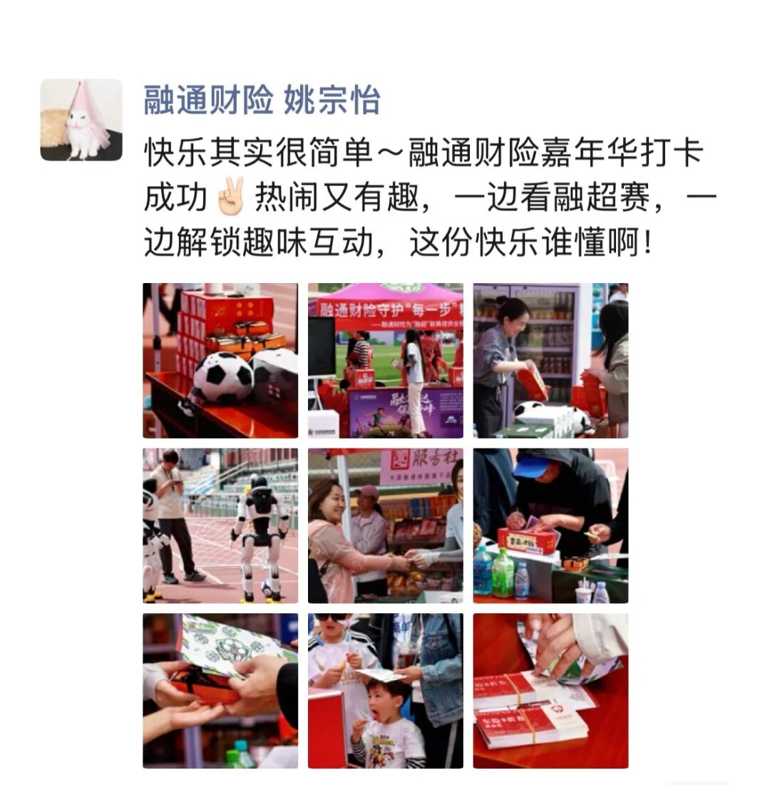 “融通财险嘉年华打卡成功,热闹又有趣,一边看融超赛,一边解锁趣味互动,这份快乐谁懂啊!”