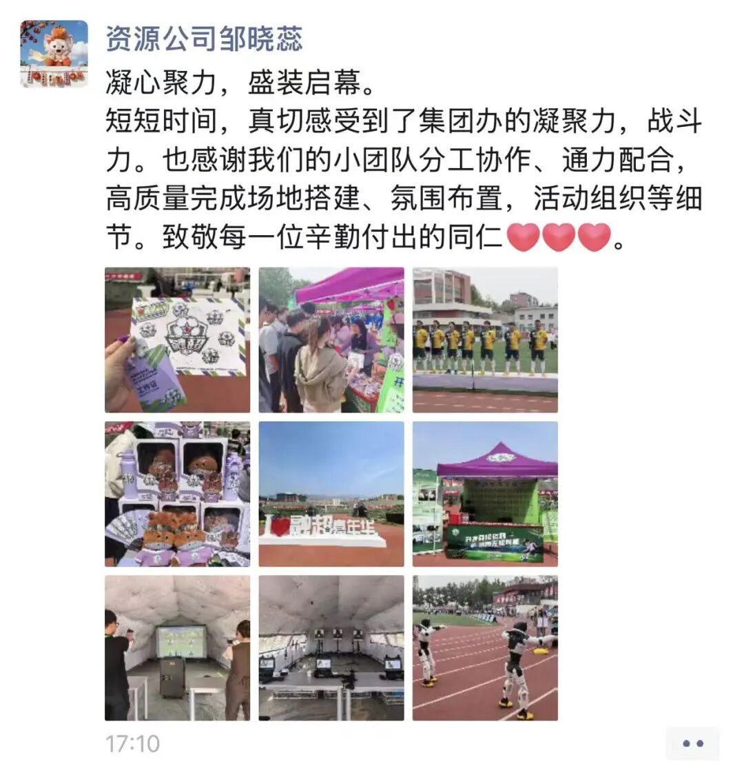 “凝心聚力,盛装启幕。感谢我们的小团队高质量完成场地搭建、氛围布置、活动组织等细节。致敬每一位辛勤付出的同仁!”
