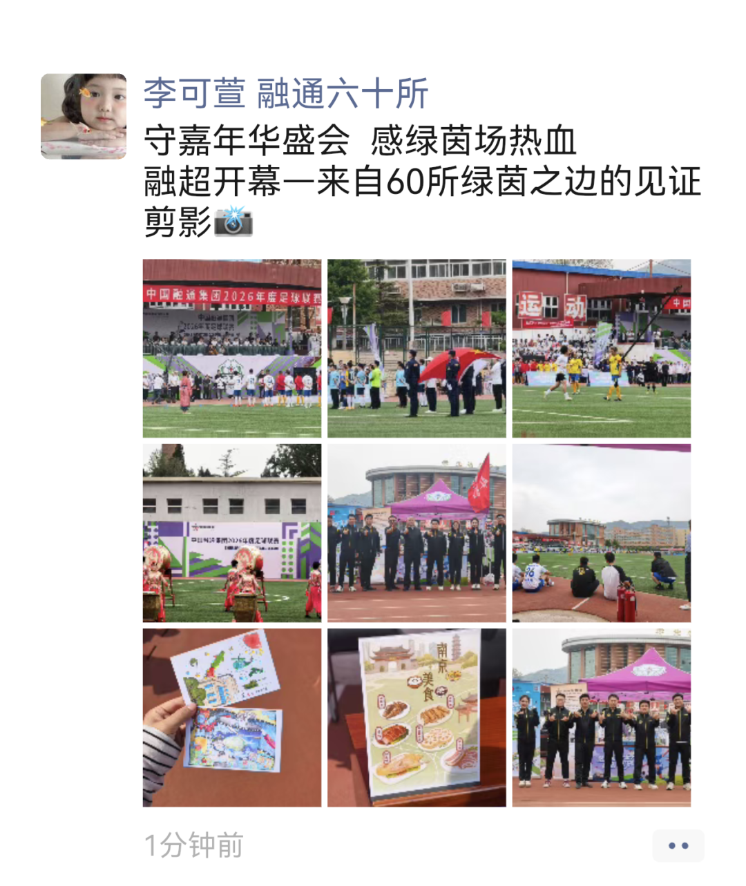 “守嘉年华盛会,感绿茵场热血。来自60所绿茵之边的见证剪影。”
