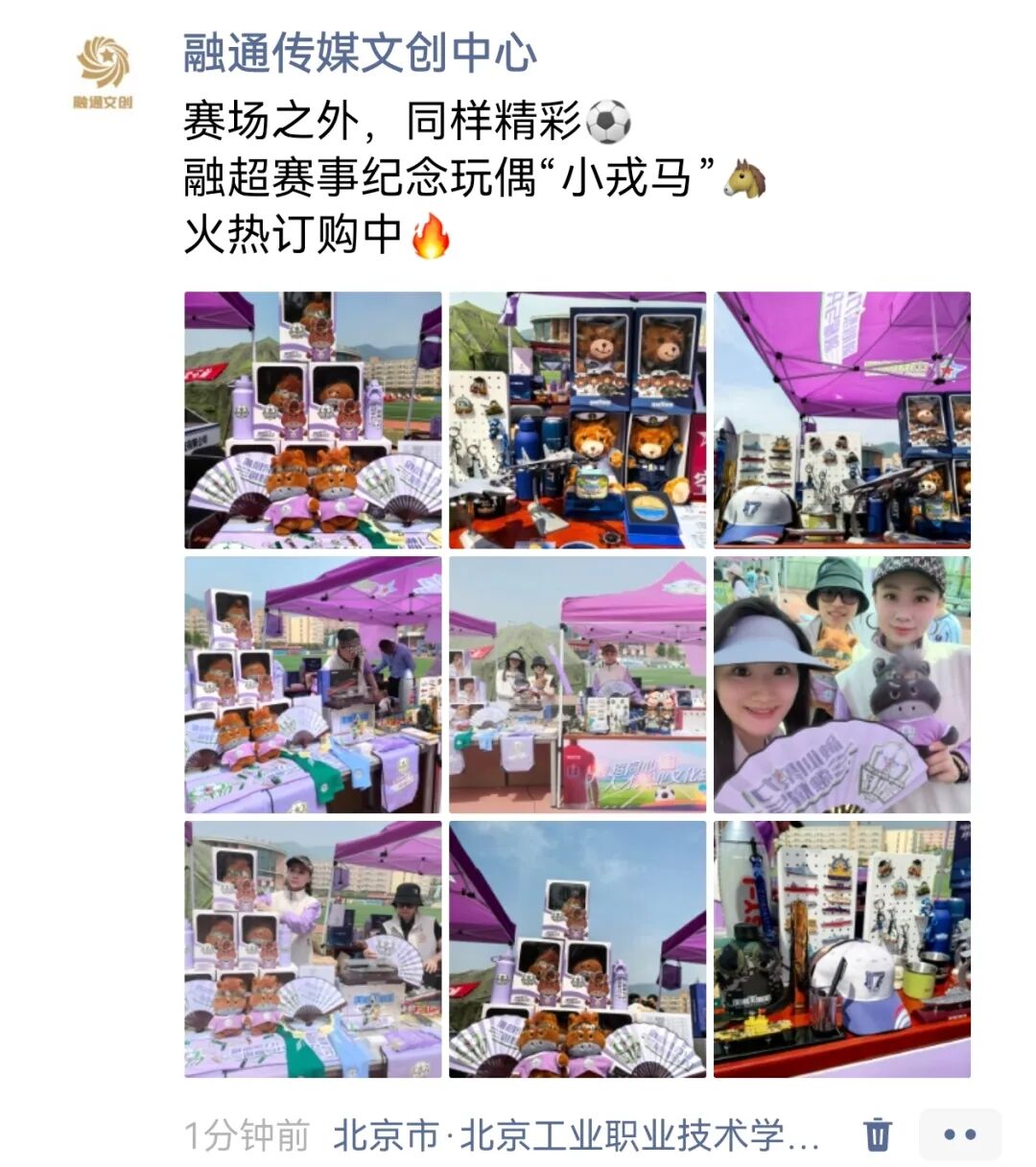 “赛场之外,同样精彩!融超赛事纪念玩偶‘小戎马’登场。”