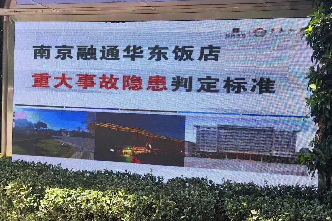 南京华东饭店通过电子屏宣传重大事故隐患判定标准
