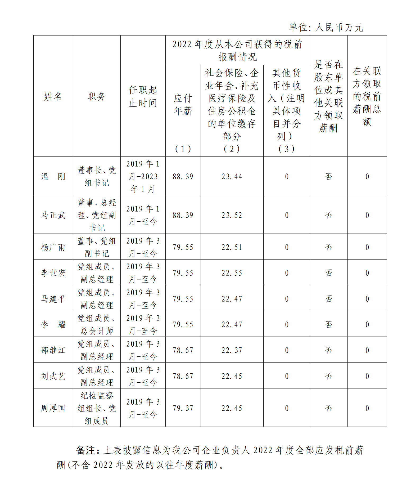 中国融通资产管理集团有限公司企业负责人2022年度薪酬情况