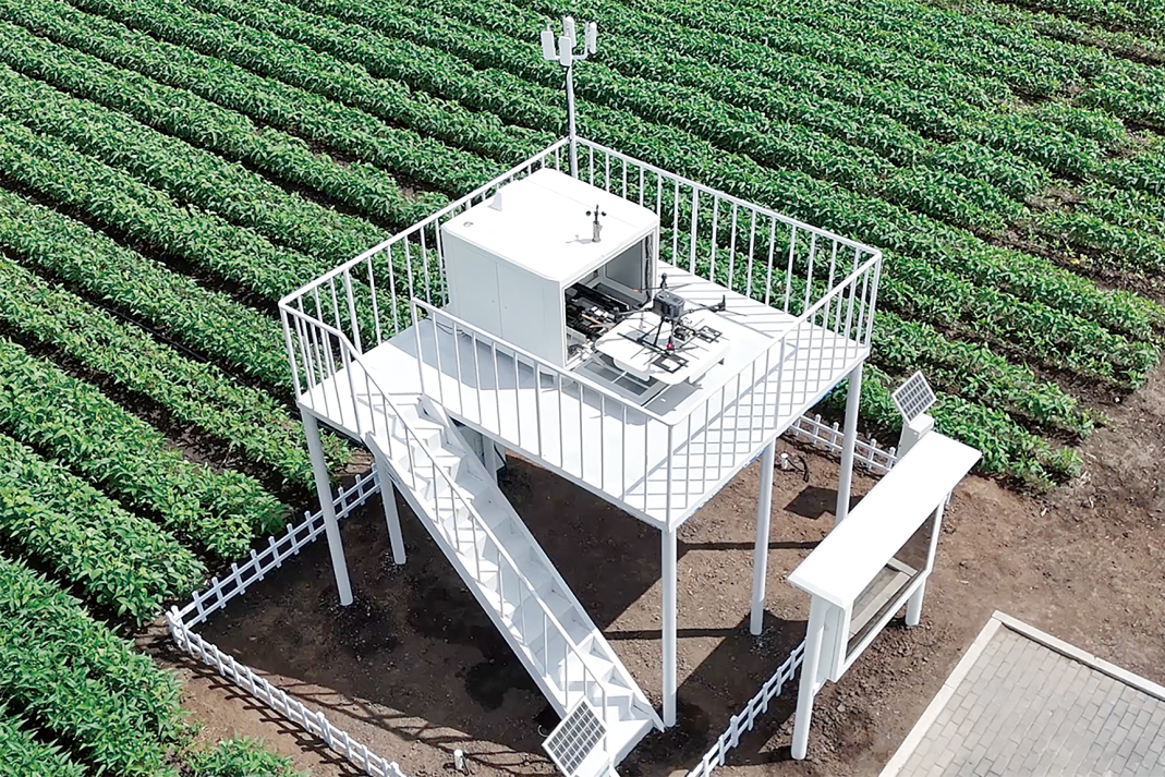 开阔平整的田垄边缘竖着一块大屏,显示空气温度和湿度、风速、风向等气象数据。“这里设立了小型气象观测站。”傅勇说,他随即指着写有“环境监测站”的小白箱子,“这里做土壤墒情智能监测,每10厘米埋一个传感器,能同时检测8层土壤。原先我们把地温计埋地里测温度,用眼看、手抓、脚踩判断湿度,可远不如现在这样精准”。