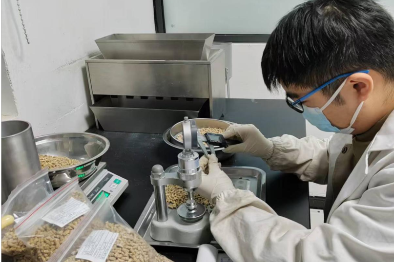 品管人员检测成品饲料